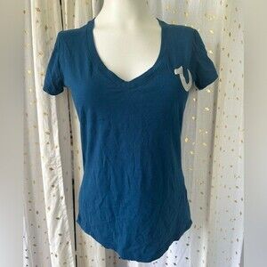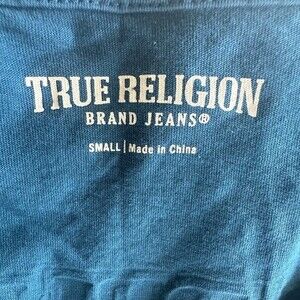 True Religion Brand Jeans Poseidon Blue Pop Buddha V Neck Tee Shirt Size Small