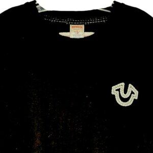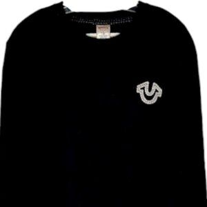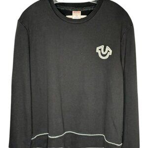 True Religion Pullover 100% Cotton Embroidered Logo Crew Sweatshirt- Black - L