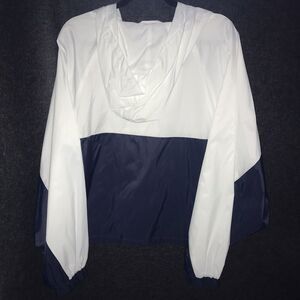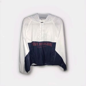 True Religion Pullover Jacket Oversize Block Red Blue Large Women Half Zip.
