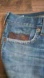 These classic True Religion RICKY jeans, featuring leather details, are a wonderful choice of blue denim for everyday wear. They are durable and stylish, offering both comfort and a timeless aesthetic. The distressed detailing on the legs, a result of motorcycle use, adds to their vintage appeal.