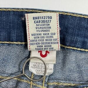 True Religion Raegan Low Rise Bell Bottom Flare Gold Back Patch Jeans Size 32 denim in great condition