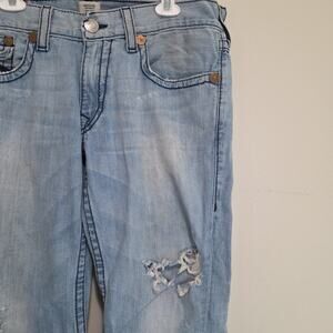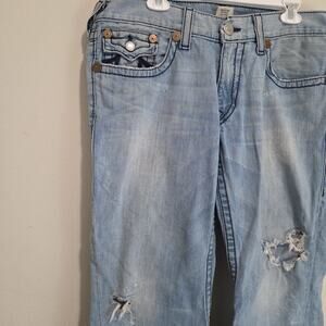 True Religion Rainbow Joey Light Wash Flare Bootcut Distressed Jeans 36 x 34
