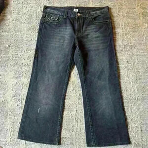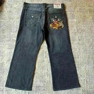 True Religion Rare Embroidered Hindu God Billy Vintage Wide Leg Jeans 36x28