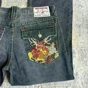 True Religion Rare Embroidered Hindu God Billy Vintage Jeans 36x28