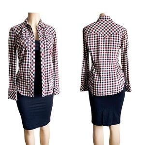 True Religion Red Gingham Plaid Checker Button Down Shirt Long Sleeves Western S