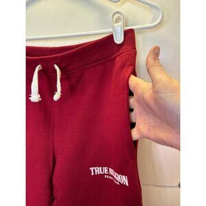 True religion, red joggers, sweatpants, elastic waist with drawstring, super soft, very clean almost like new condition. They are pre-worn smoke free pet friendly home has a front pockets.