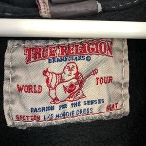 True Religion Rhinestone Logo Hoodie Dress Long Sleeve Large