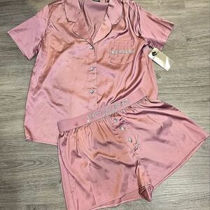 True Religion Rhinestone Logo Stretch Satin Pajama Set