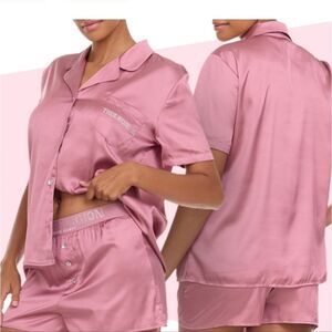 Experience ultimate comfort with the True Religion Women's Pink Satin Pajama Set. This luxurious set features a soft, silky texture perfect for a restful night's sleep. The elegant pink color adds a touch of style to your sleepwear collection.