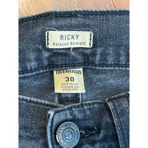 True Religion Ricky Jeans Men 30x31 Black Relaxed Straight Flap Pockets Denim