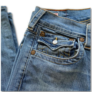 True Religion Ricky Men's Denim Jeans 33 Medium Wash Front Fade EUC.
