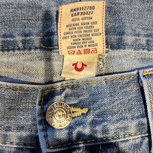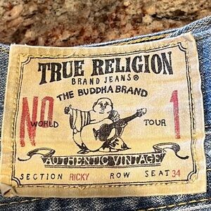 True Religion Ricky distressed flat pocket jeans.. In excellent condition very nice jeans. Pliskova measurements they measure smaller than a 40. If you have any questions please ask..measurements are in the pictures.
