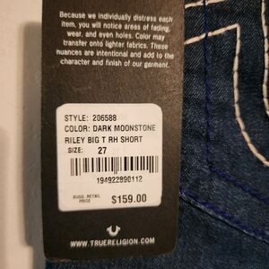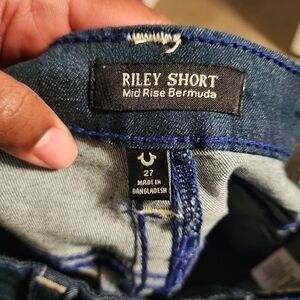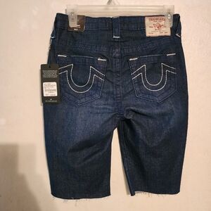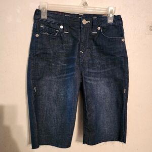 True Religion Riley Short Mid Rise Bermuda Jean Shorts Raw Hem Size 27 NWT