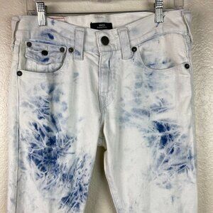 True Religion Rocco Relaxed White Blue Tie Dye Skinny Jeans Sz 29