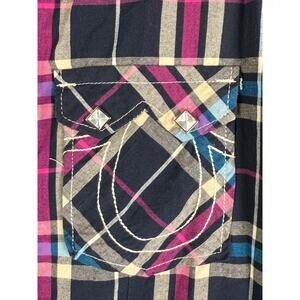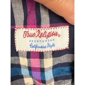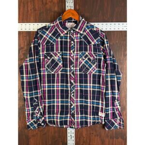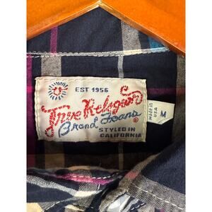 True Religion Rocky Western Long Sleeve Square Pearl Snap Shirt Mens Medium EUC