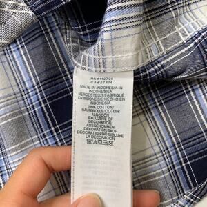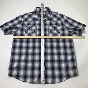 True Religion Shirt Mens 2XL Navy White Cotton Western Yoke Plaid Pearl Snap