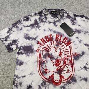 True Religion Shirt Mens Medium Tie Dye Onyx White SS Lullaby Buddha Graphic Tee