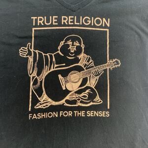 True Religion Shirt Women's Size XL Logo Buddha Black V-Neck Tee