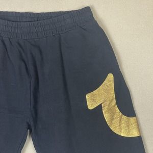 True Religion Shorts Mens Large Black Athletic Gold Logo Gym Workout Adult