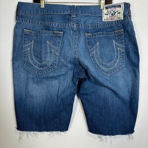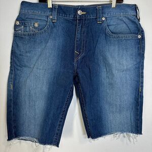 True Religion Shorts Mens Size 42 Blue CutOff Blue Cotton Denim Embroidered