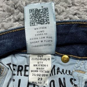 True Religion Shorts Womens 23 Keira Low Rise Micro Stretch Flap Raw Hem Cut Off