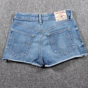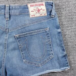 True Religion Shorts Womens 26 Blue Denim High Rise Raw Hem Maisie