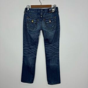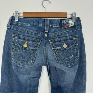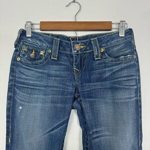 Women's True Religion Signature Boot Sz 26 Medium Dark Denim Distressed Pocket Jeans