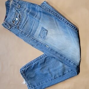 True Religion Size 25 Blue Jordan Y2K Flap Pocket Distressed/Destroyed Jeans