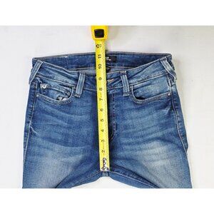 True Religion Size 27X34 Womens Billie Mid Rise Straight Blue Denim Logo Jeans