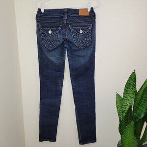True Religion Skinny Jeans Dark Wash Horseshoe Stitch Pocket Women's Size 25