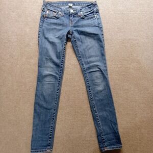 True Religion Skinny Medium Blue Wash Jeans Womens Sz 29x31 Embroidered Pockets