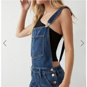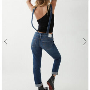 True Religion Slim Boyfriend Overalls Blue Denim Open Back Straight Leg Sz XS