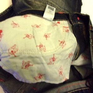 True Religion Colored Jeans New with tags...Slim Moto Colored in a marked Size 44 -- I measure 21" across the waistband so that means a 42" waist--so I've called them a 42-44. Maybe they're supposed to start smaller and they stretch?