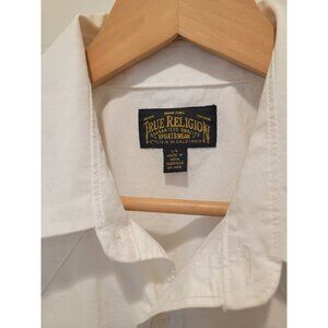 True Religion Sportswear White 100% Cotton Short Sleeve Button-Up Shirt Men's L
