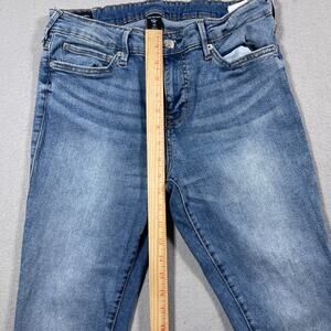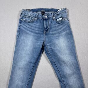 True Religion Stella Jeans Women 32 Mid Rise‎ Skinny Blue Denim Raw Hem Stretch
