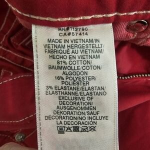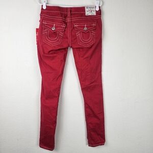 True Religion Stella Low Rise Skinny Jeans Size 27 Red Stretch Denim Logo