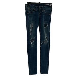True Religion Stella Stretch Distressed Destroyed Blue Jeans Women's Size 26/2
