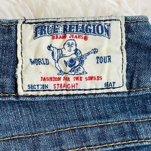 True Religion straight blue denim jeans in size 26 for women. Crafted from a comfortable cotton/spandex blend, these jeans offer a perfect fit and a fashion-forward look.