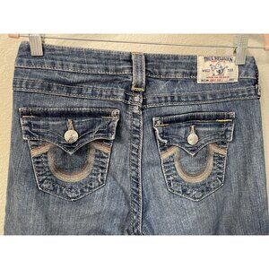 True Religion Straight Leg Womens Size 28 Denim Blue Jeans Distressed Preppy