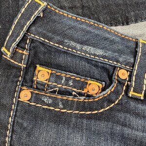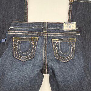 True Religion Straight Satin Big T Jeans Size 28 Dark Wash USA Made Low Rise