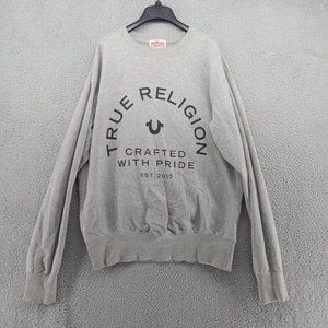 True Religion Sweater Womens 3XL Gray Brand Logo Merch Pullover Crewneck Y2K