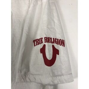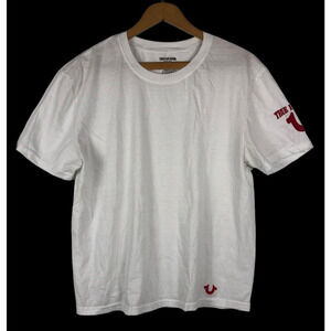 True Religion T Shirt Large White Logo Spell Out Sleeve Classic T Mens Womens