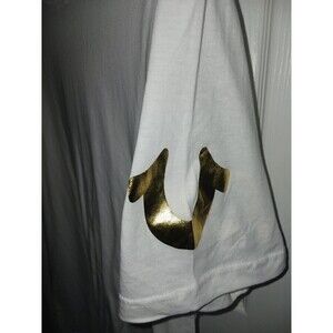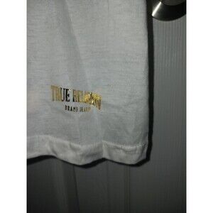 True Religion T Shirt Men's Tee Extra Large XL White with Gold Logo Crew Neck *