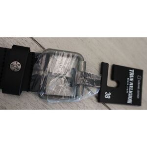 True Religion TR302059 Mens Sz 38 Black Terry Rivet Leather Belt w/Roller Buckle