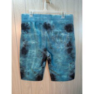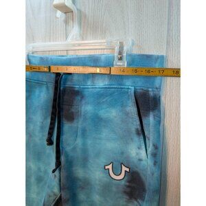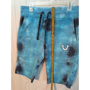 True Religion Tie Dye Sweat Shorts Small Blue White Logo Drawstring Casual Knit