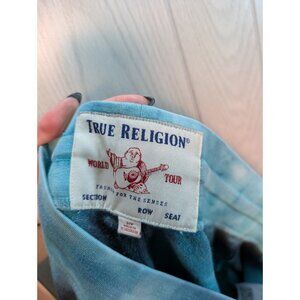 The True Religion Tie Dye Sweat Shorts in size Small are a stylish and casual addition to any man's wardrobe. These blue and white sweat shorts feature a drawstring closure, flat front, and a comfortable knit fabric. The tie-dye pattern adds a fun and unique touch, while the logo accents give a fashionable vibe. Perfect for all seasons, these sweat shorts are easy to care for with machine washable instructions. With a regular fit and slash pockets, these shorts offer both style and functionality for a laid-back look.