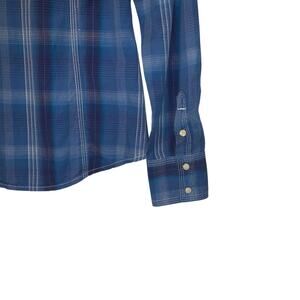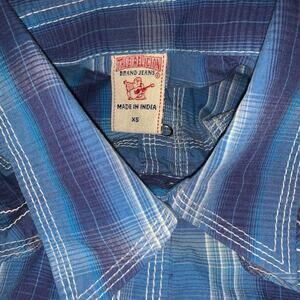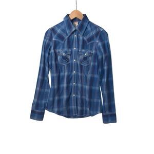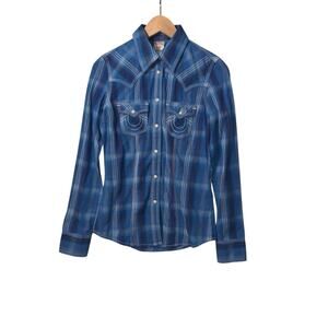 True Religion Top Womens XS Blue Plaid Pearl Snap Yoked Western Rodeo Riding