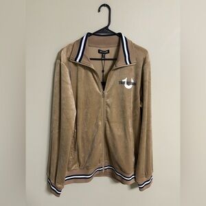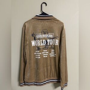 True Religion Tour Jacket Men's Size Medium Track Velour Travertine Full Zip New