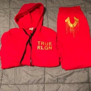 Do you have the red true religion jogging suit in Large?