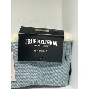 The True Religion headwrap is designed for casual occasions and is suitable for both men and women. It features a blue color and is crafted from a combination of denim and fleece, providing warmth and comfort. The item is new with tags. Keywords: True Religion, headwrap, blue, denim, fleece, unisex, casual, warm, new with tags, fashion accessory, headwear, stylish, comfortable, versatile, trendy.